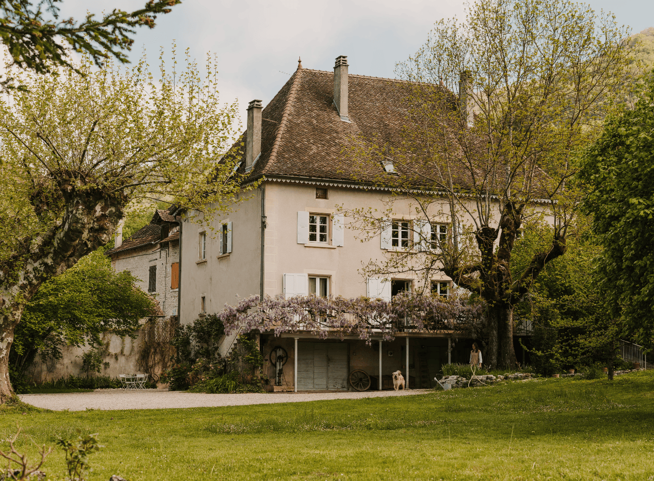 À Lhuis, petit village de l’Ain posé au pied des montagnes du sud du Bugey, La Lhuseraie est une charmante maison de campagne du 19ᵉ siècle. Le domaine s’étend sur un hectare de parc arboré avec son jardin généreux, sa piscine ouverte sur la campagne, des coins ombragés et plusieurs jeux en extérieur pour les enfants. On y vient pour ralentir et profiter d’un cadre naturel préservé au calme, à seulement 1h de Lyon et Genève.