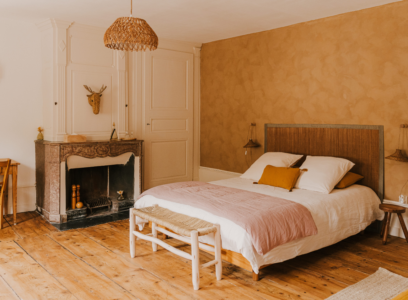 La Lhuiseraie est avant tout une maison portée par ses propriétaires, Lucas et Alice, un jeune couple qui a quitté la vie urbaine pour s’installer à la campagne, où ils ont acquis et repensé cette bâtisse comme un véritable espace de partage. Composée de deux maisons, La Lhuiseraie abrite un gîte pour six personnes et une maison d’hôtes avec trois chambres, Dormance, Dahlia et Pensées, toutes décorées avec des matériaux naturels, des tons apaisants et des pièces chinées qui racontent une histoire. À La Lhuiseraie, l’attention des propriétaires se ressent dans chaque détail, de la table d’hôtes avec des repas élaborés à partir de produits locaux au petit-déjeuner gourmand.