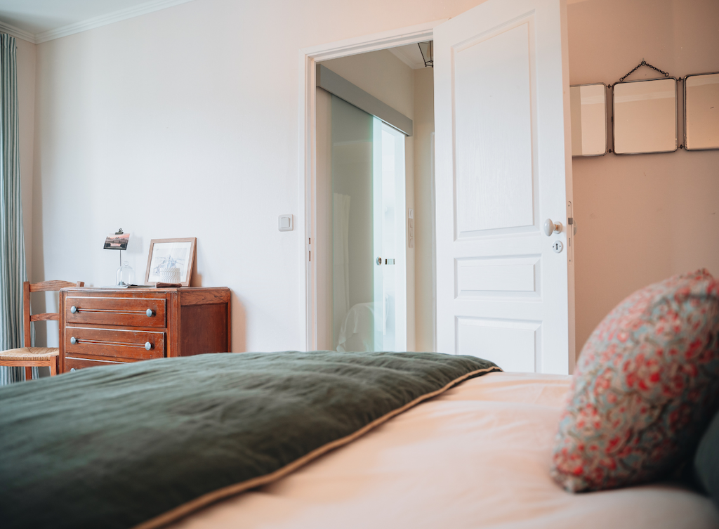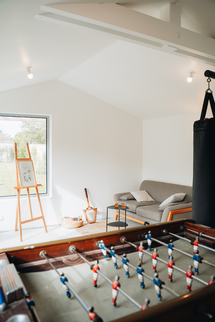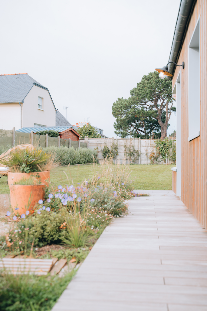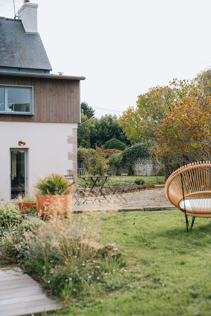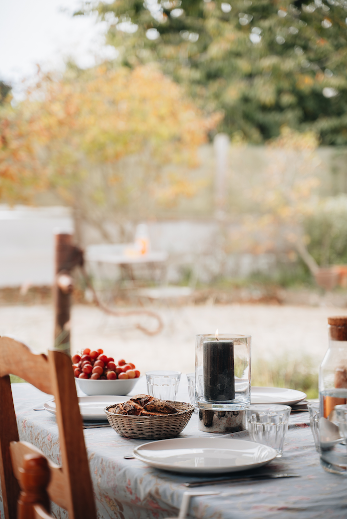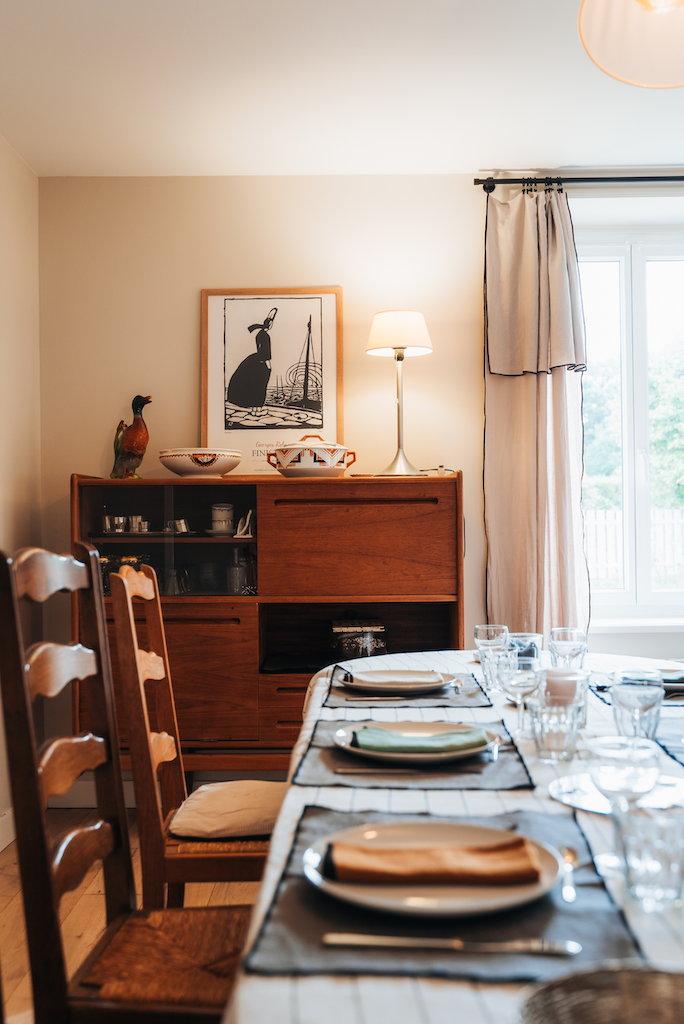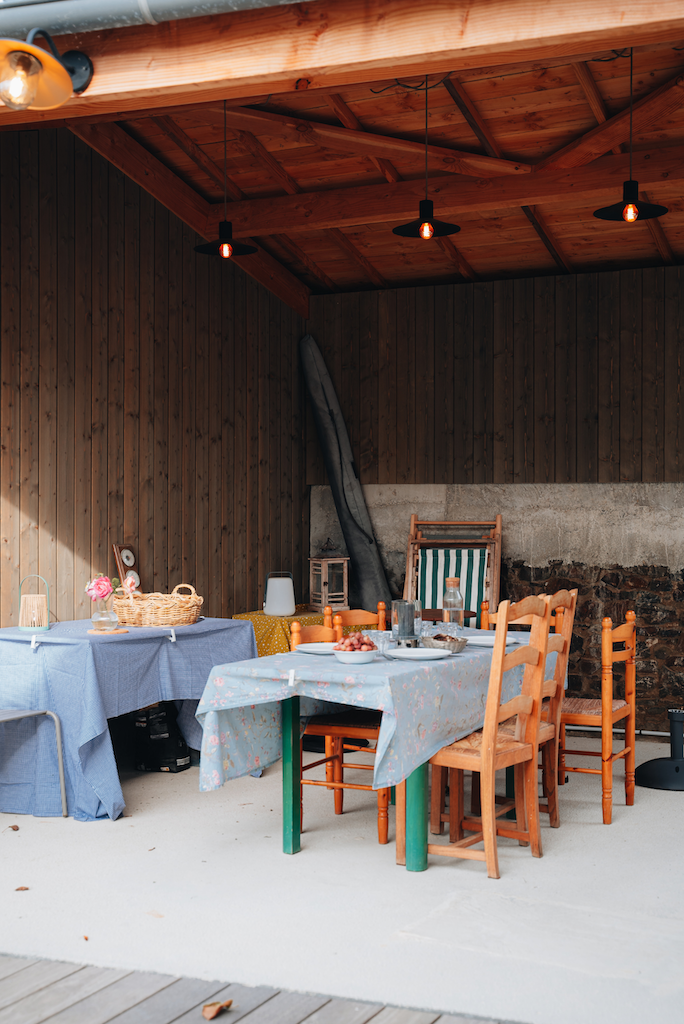 En saison fraîche, c’est le salon. On prend le temps de discuter, de jouer aux cartes en famille ou entre amis. Un espace d’une grande douceur, profondément apaisant. En été, c’est le préau ! Il permet de profiter du jardin dès le petit déjeuner et jusqu’au soir. C’est le cœur des journées d’été : celui des grandes tablées, des rires et du bonheur partagé.