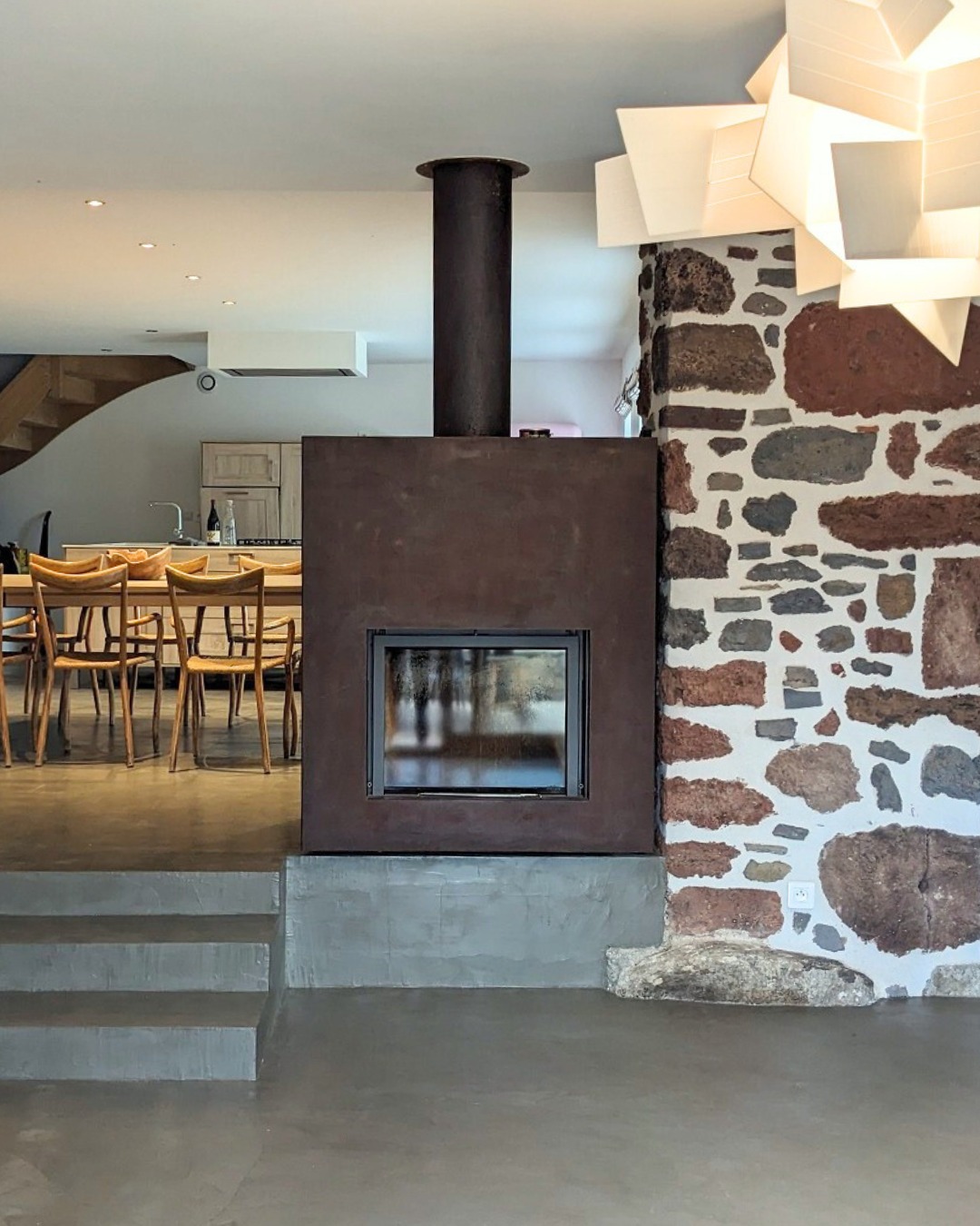 Les volumes généreux, les matières naturelles et la lumière omniprésente créent un lieu à la fois authentique et confortable, propice aux séjours en famille ou entre amis.